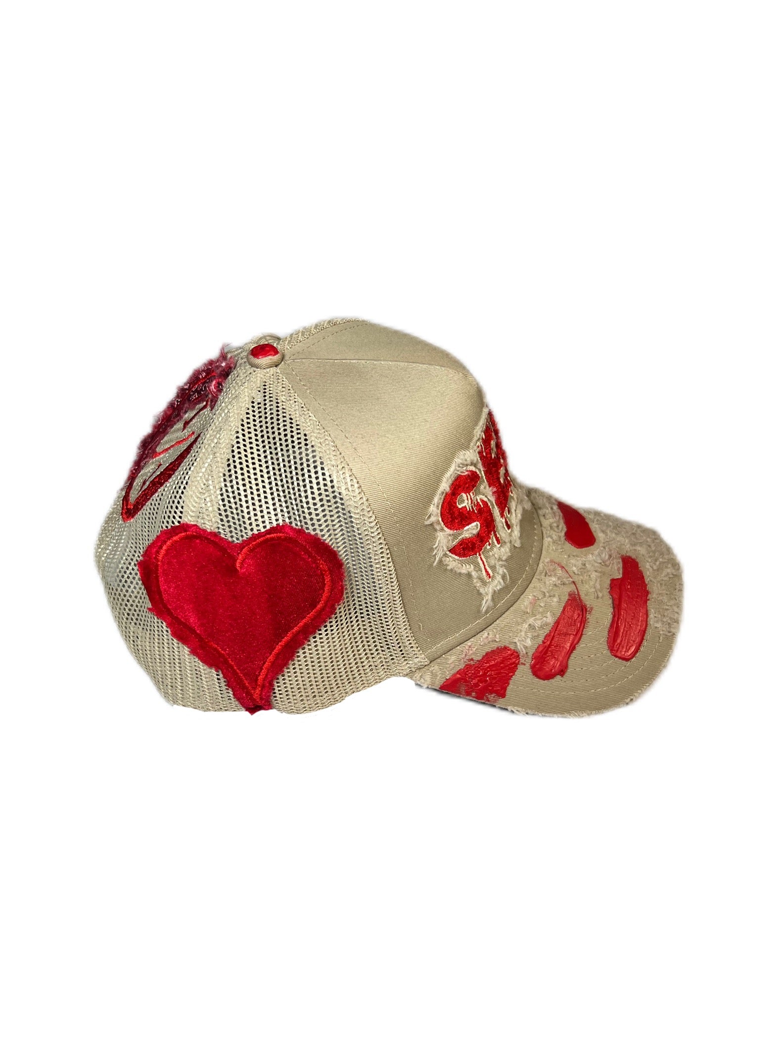 Velvet heart, with the dripping red crown and red bandana 1/1 on back with red screenprint ink dripping